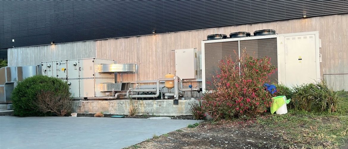 Se instrumentó el Tablero de Fuerza y Control existente para capturar el estado operacional de bombas, variables eléctricas del circuito de control y parámetros analógicos del sistema hidráulico (temperaturas de circuito primario y secundario, presión y temperatura ambiental interior/exterior). Adicionalmente, se habilita la capacidad de controlar de manera remota (manual o automáticamente) el modo de operación (calefacción o enfriamiento) del Equipo de Climatización Chiller RHOSS.